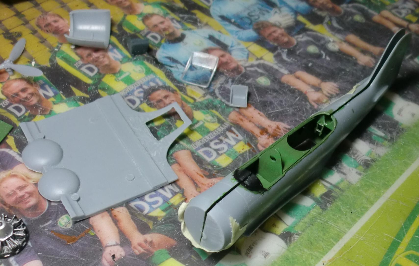 Wat betreft de achterste cockpitbeglazing: om te vuren was die helemaal naar voren geschoven, dus je zou met een fijne zaag dat stukje kunnen afzagen en weglaten.