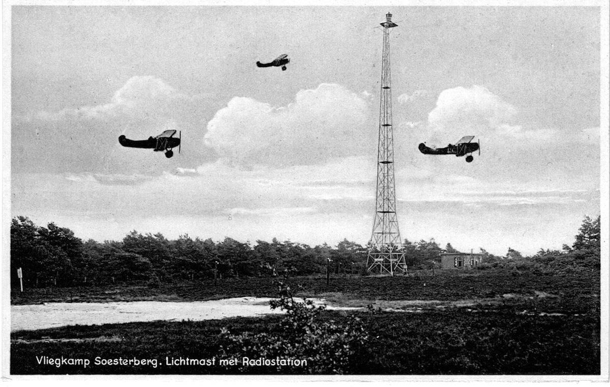 Vliegkamp Soesterberg. Lichtmast met Radiostation.
