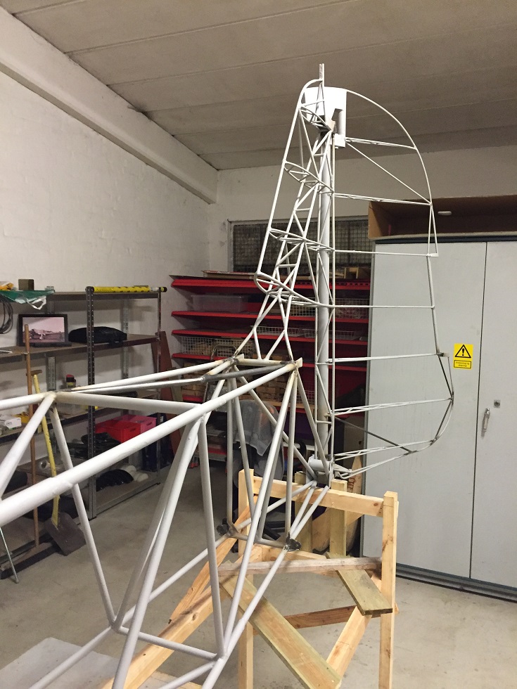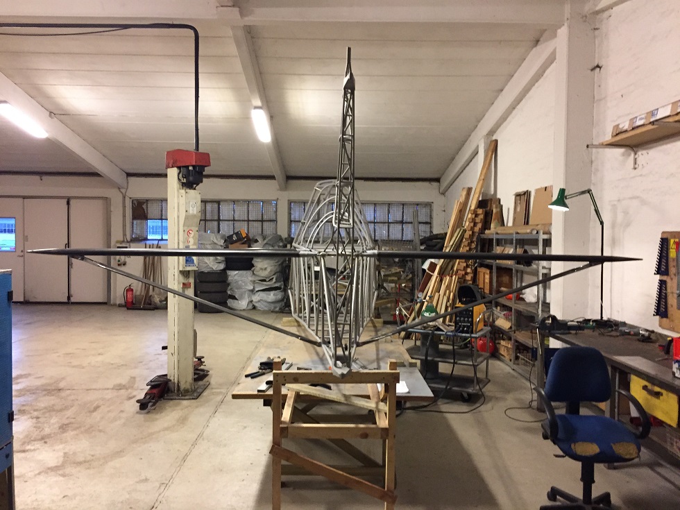 Now, with the paperwork in place, the practical work could be started. Practical work meant that I had to use 14 days of my vacation to attend a TIC Welding school ad passing the exam to be allowed to weld my own plane. I did that, and went out looking for a suitable location for the building project. I found a location close to home and rented 1/3 of approx. 190 square meters in a work shop. Early 2015 I moved in and planned the project start. I needed quite a lot of tools and equipment and in April I received the first of many shipments of 4130 steel tubing from Aircraft Spruce in Germany. In May 2015, I started the welding the first main section of the fuselage, the cockpit section. The second main section was the tail fin and rudder post with the third main section being the rudder. In the autumn, I received a big load of steel tubes and took a week off from work to build the “Jig” for the complete fuselage, preparing the tubes by cutting, shaping them to fit the design. Within that week, I had the complete fuselage welded together and pre-painted to protect the metal.