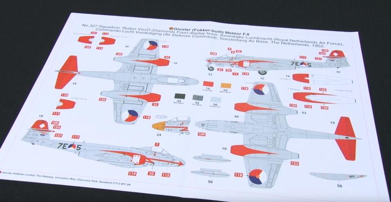 Hoewel op de doos "Closter Meteor F.8 Korea" staat, zitten er in deze doos ook decals om de uitvoering van Ruiten Vier te kunnen maken.