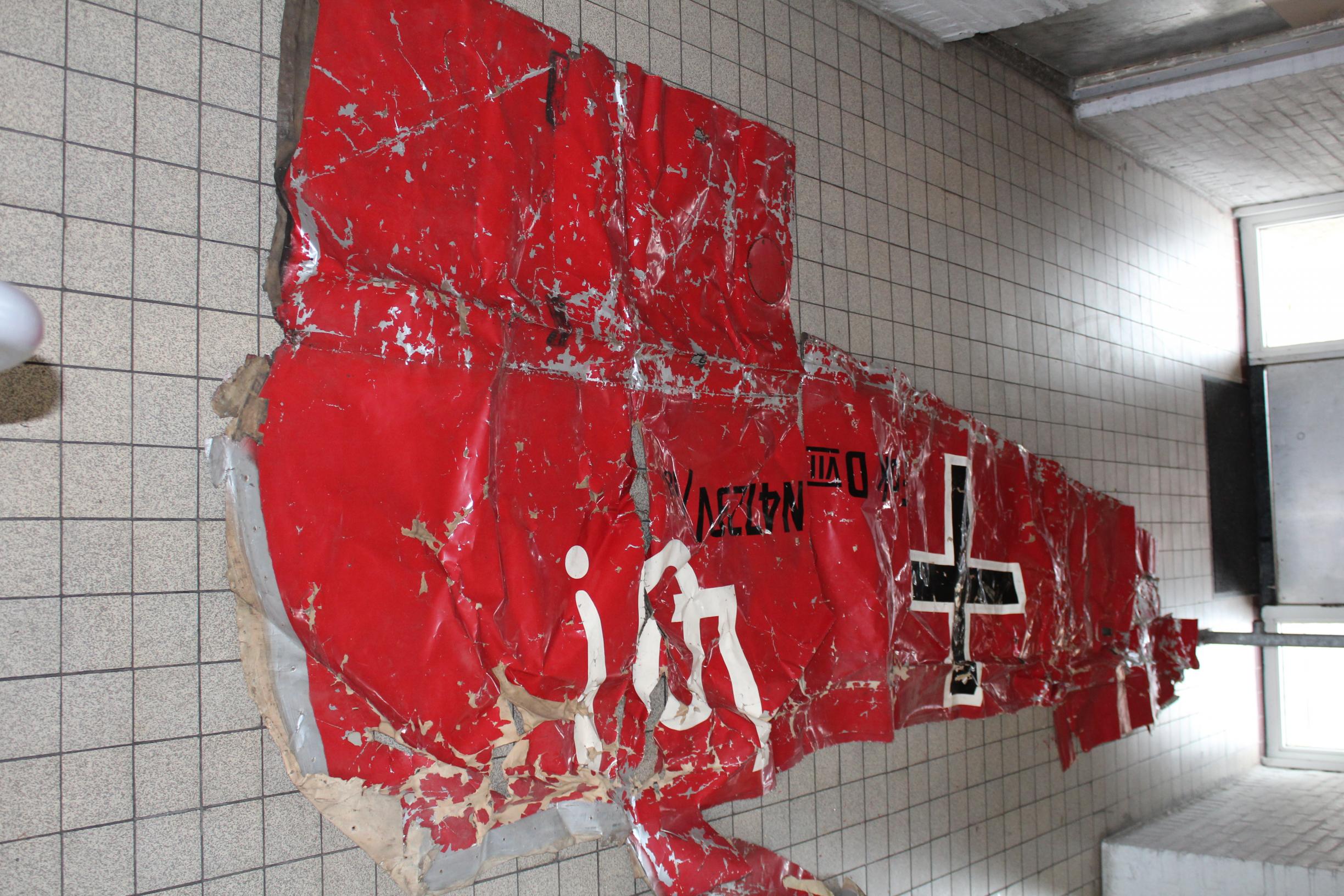Bijlage 29685Originele linnen bekleding van de rechter zijkant van de romp van de Fokker D-7 die in 1982 door Fokker werd aangekocht uit het "Wings and Wheels" musem in Orlando Florida.