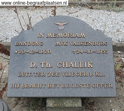 Tijdens de landing van de Seafury F8 op 24 oktober 1955 op het Marine Vliegkamp Valkenburg viel een door een afvuur weigering nog resterende bom uit het rek en explodeerde onder de staart van het vliegtuig waarbij LTZV 1 D. T. Challik op slag wordt gedood.