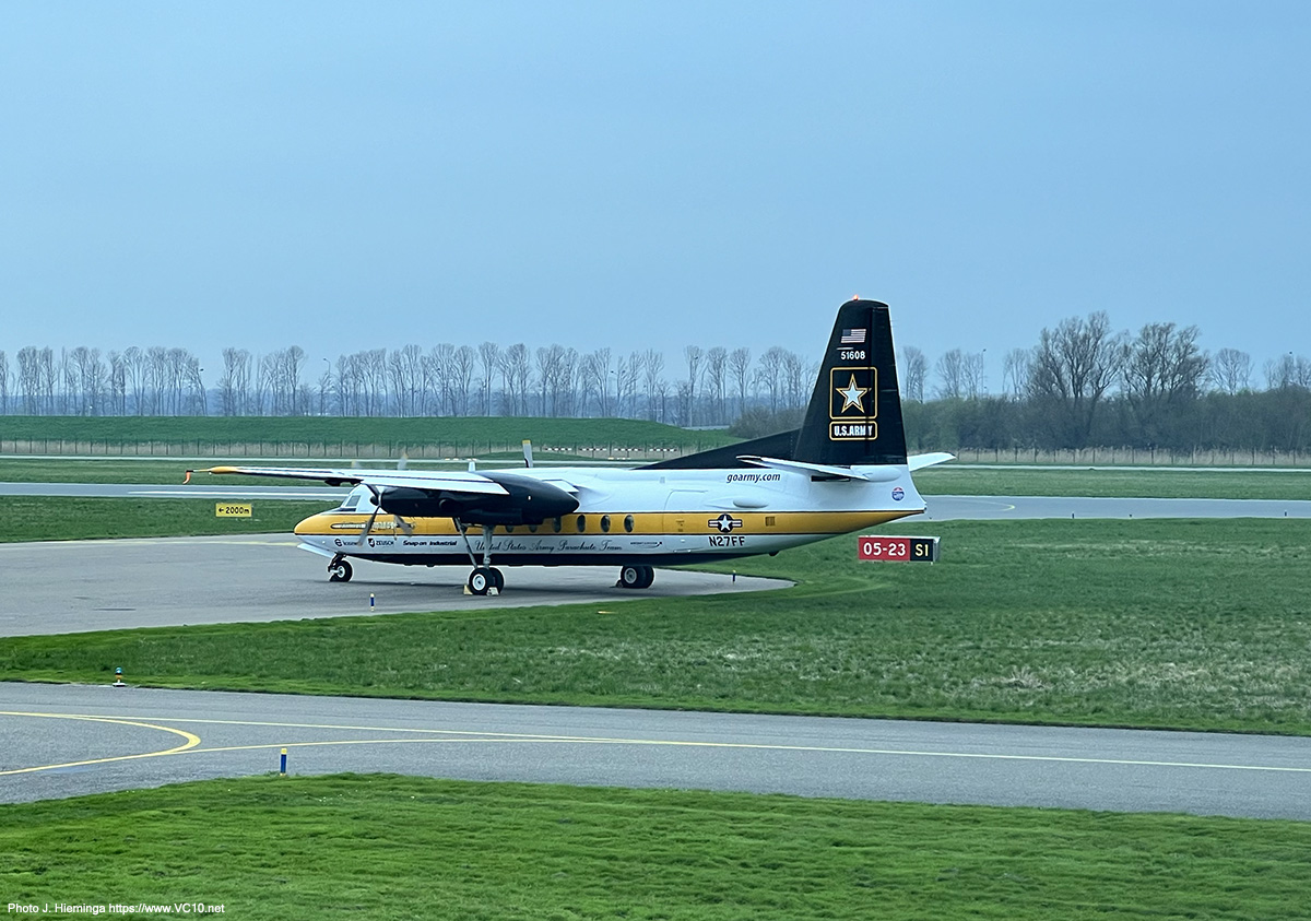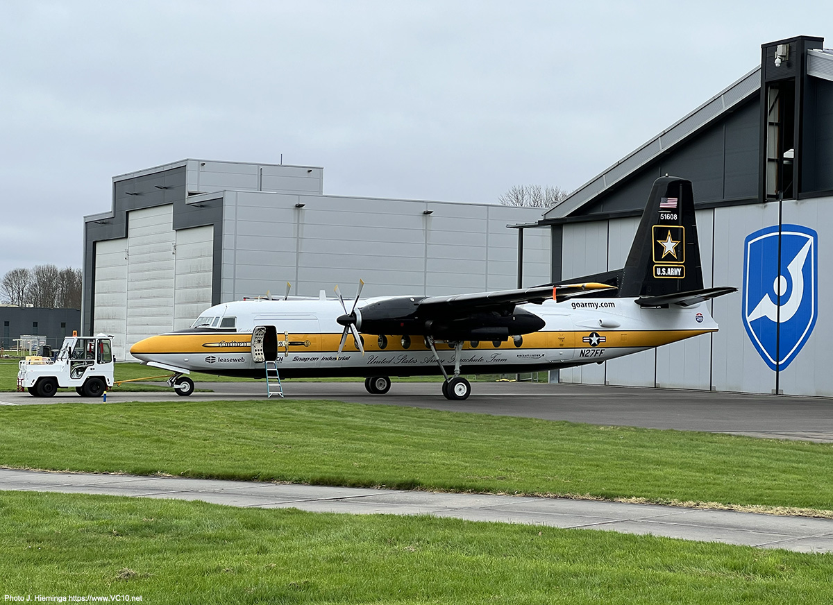 Sinds de bouw bij Fokker in 1985 is deze F27 400M Troopship het werkpaard geweest van het parachuteteam ‘Golden Knights’