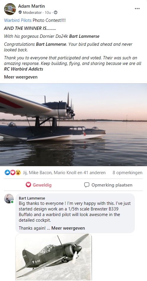 Deze week heb ik met een foto van een eerder project meegedaan aan een foto wedstrijd. De foto van mijn Dornier Do24k vliegboot heeft gewonnen. De prijs is een prachtige pilootpop van warbirdpilots welke ik voor het volgende project ga gebruiken.