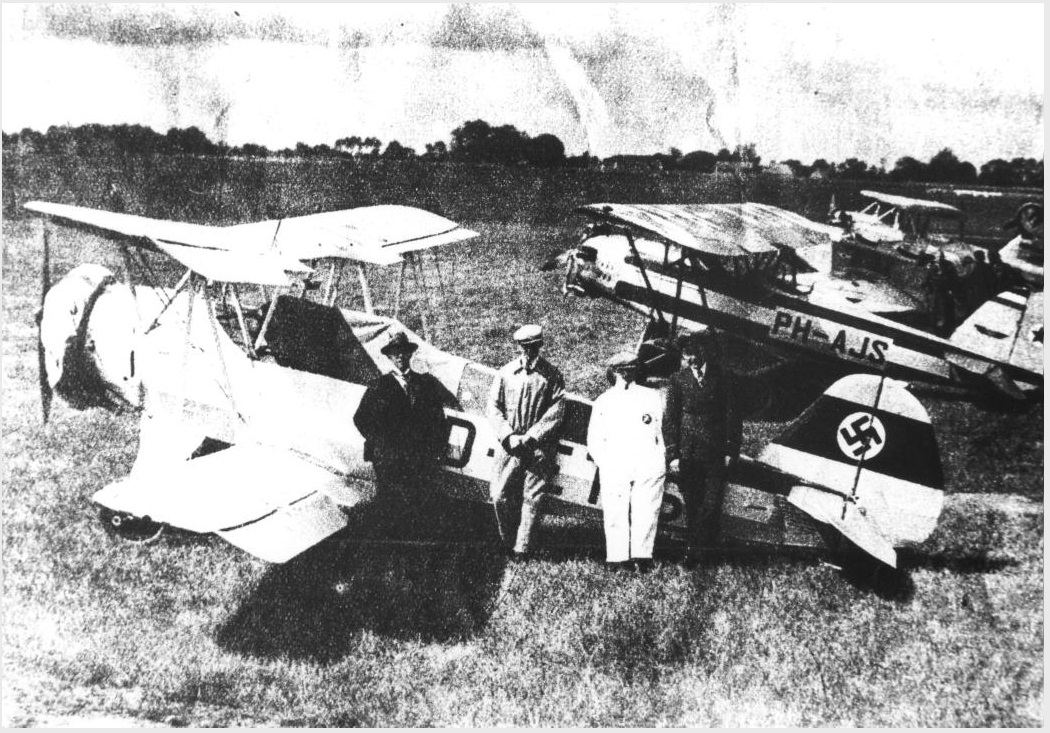 Over de bovenste foto is geschreven dat er Texaco onder op de vleugel staat, dit moet bij Muller gebeurt zijn want die had een garage.