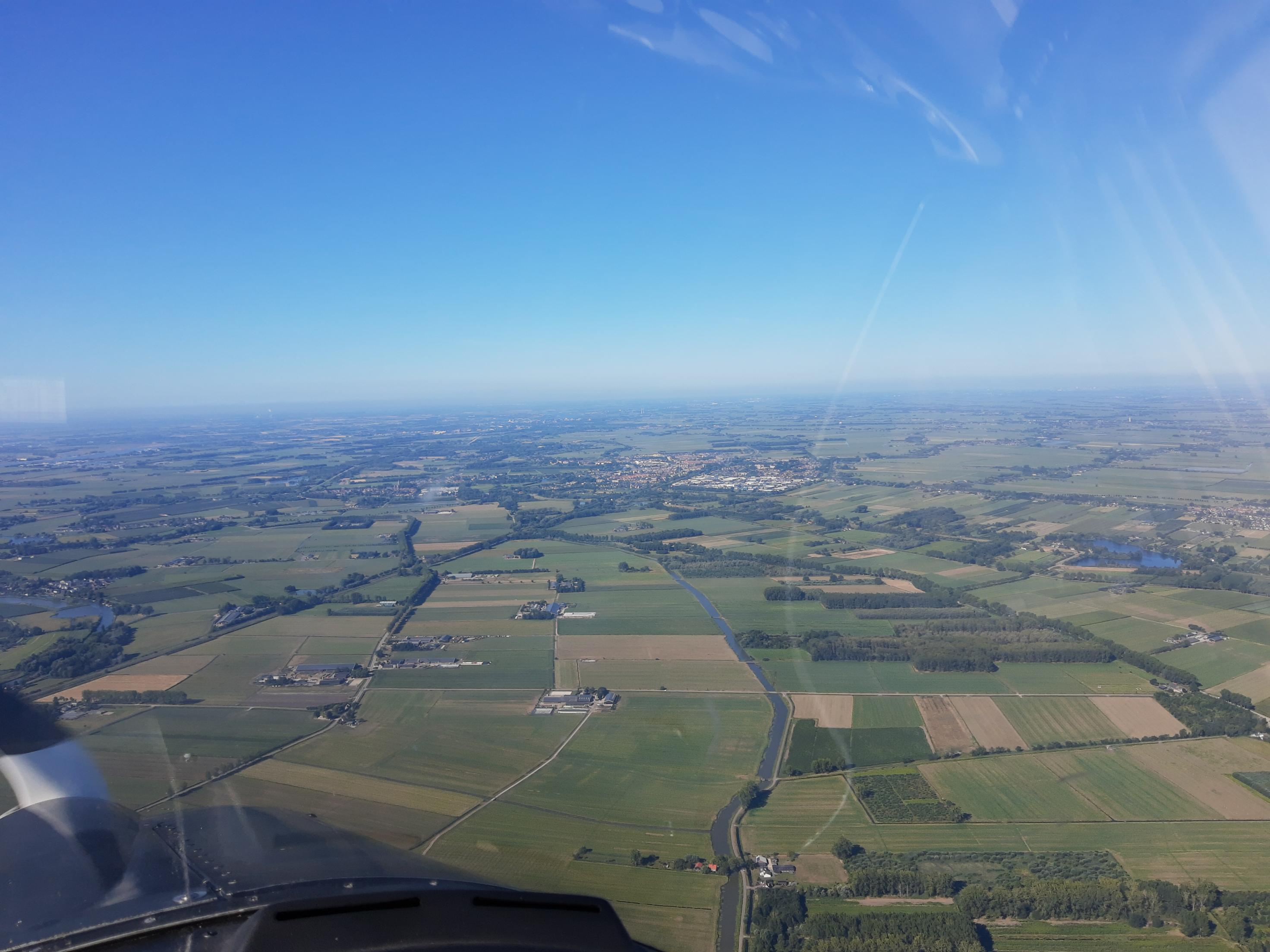 Na Teuge, waar je vrijwel recht op af vliegt vanaf Hilversum, hebben we grofweg de A50 gevolgd tot Zwolle, dan over Kampen richting Urk, en vanaf Stavoren de oversteek naar Den Oever. Bij Den Oever ga je de Corridor in, een stuk luchtruim in de richting van Texel, waar je op 1500 voet over de Waddenzee mag. Daarbuiten moet je wat hoger blijven.