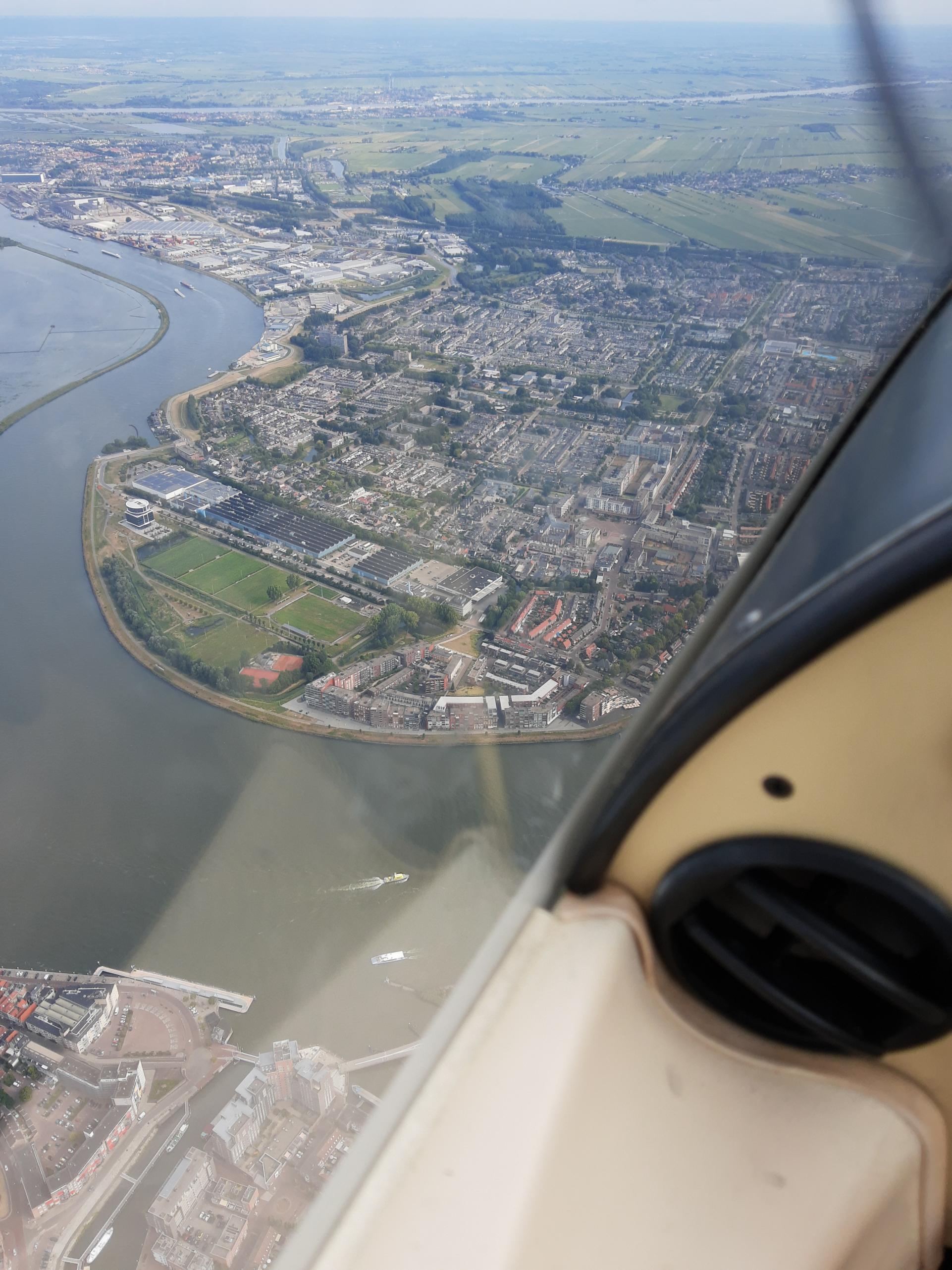 En dan arriveren we toch boven Dordrecht. De spoorlijn die van links naar rechts loopt, heb ik vrijwel elke dag gebruikt tijdens m'n studiejaren.