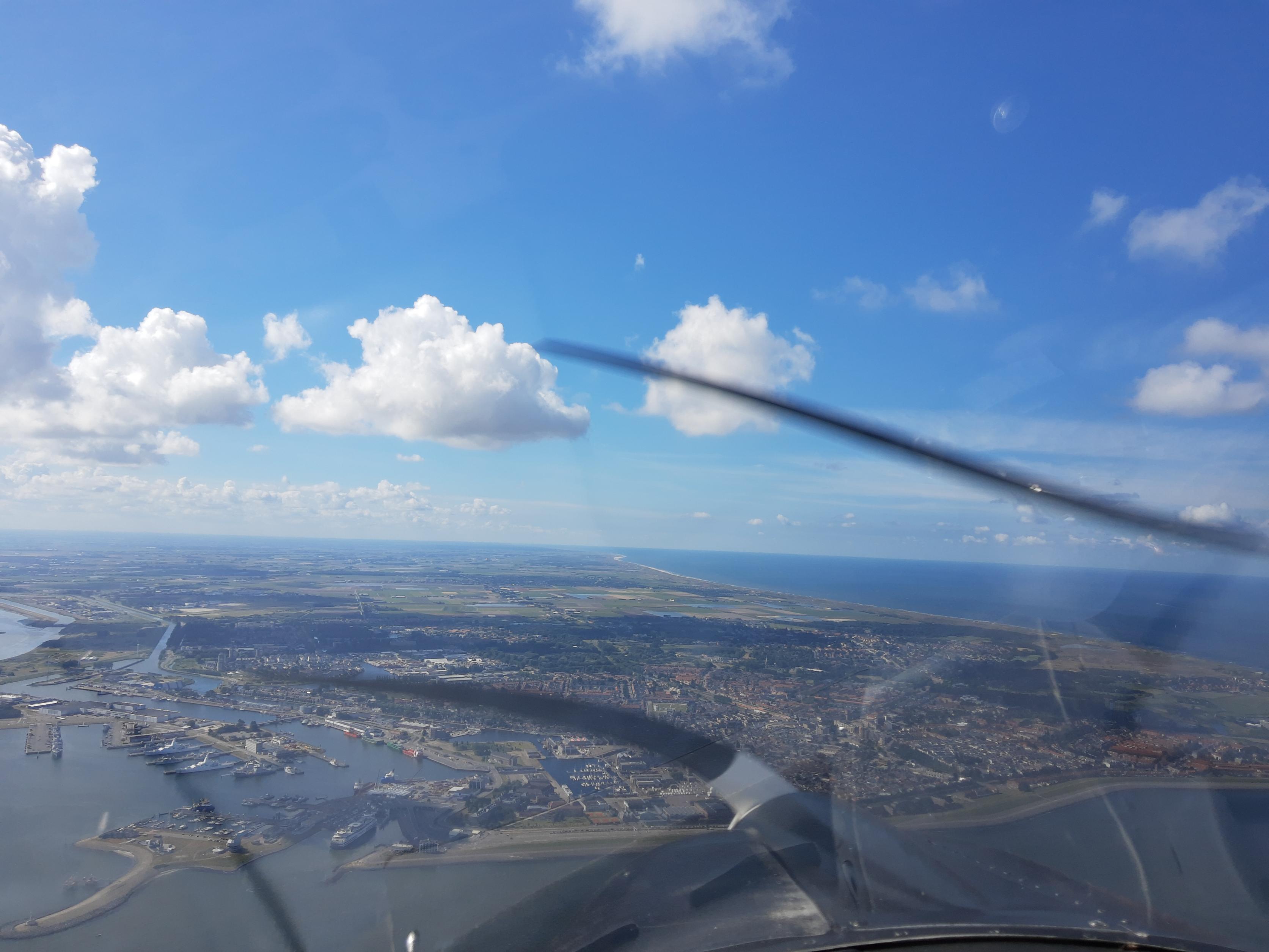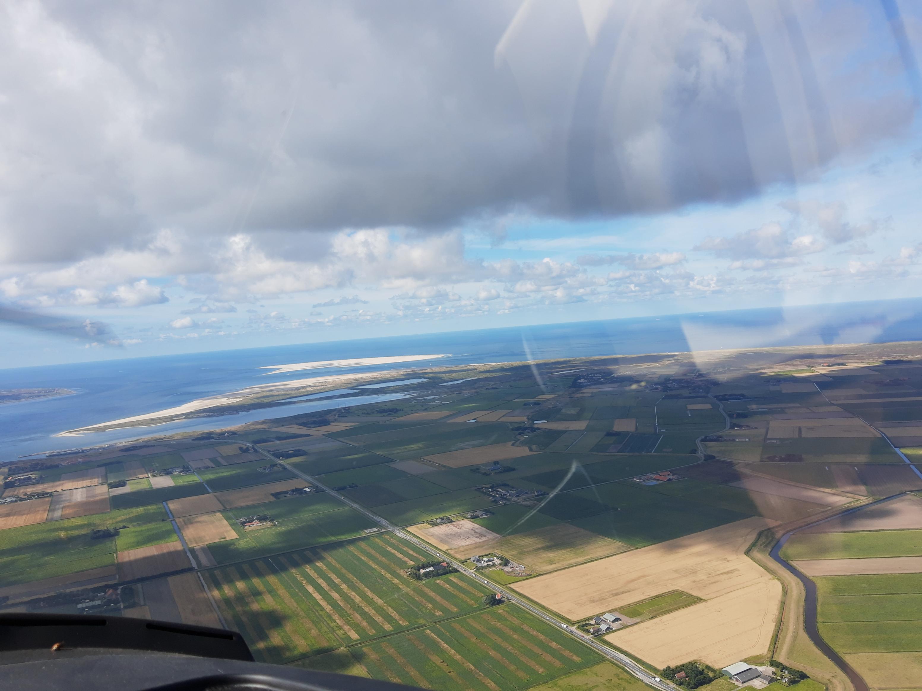 Een andere vlucht: op en neer naar Texel. Ook gewoon met de auto was ik er nog nooit geweest, maar met het vliegtuig sta je er zo (tussen de 30 en 45 minuten). Je moet wel een beetje oppassen met de TMA's van Schiphol, dus onder de 1500 voet blijven. En boven de 1000 voet, want in geval van motorstoring wil je nog een eind kunnen doorvliegen.