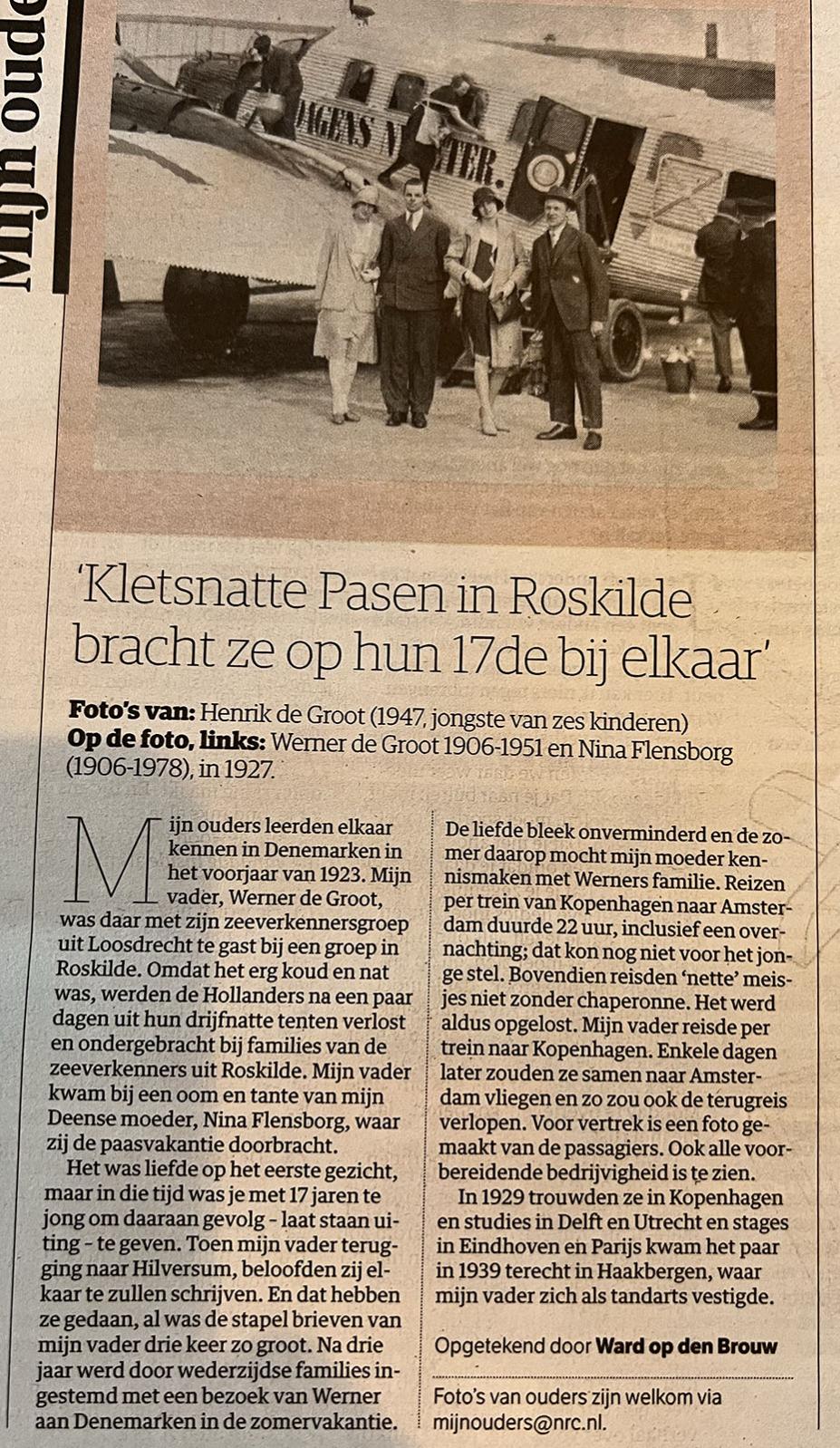 Een foto uit het NRC van een paar dagen terug. Volgens mij iets uit de Junkers stal maar ik weet zo even niet wat er in 1927 tussen Kopenhagen en Amsterdam heen en weer vloog.