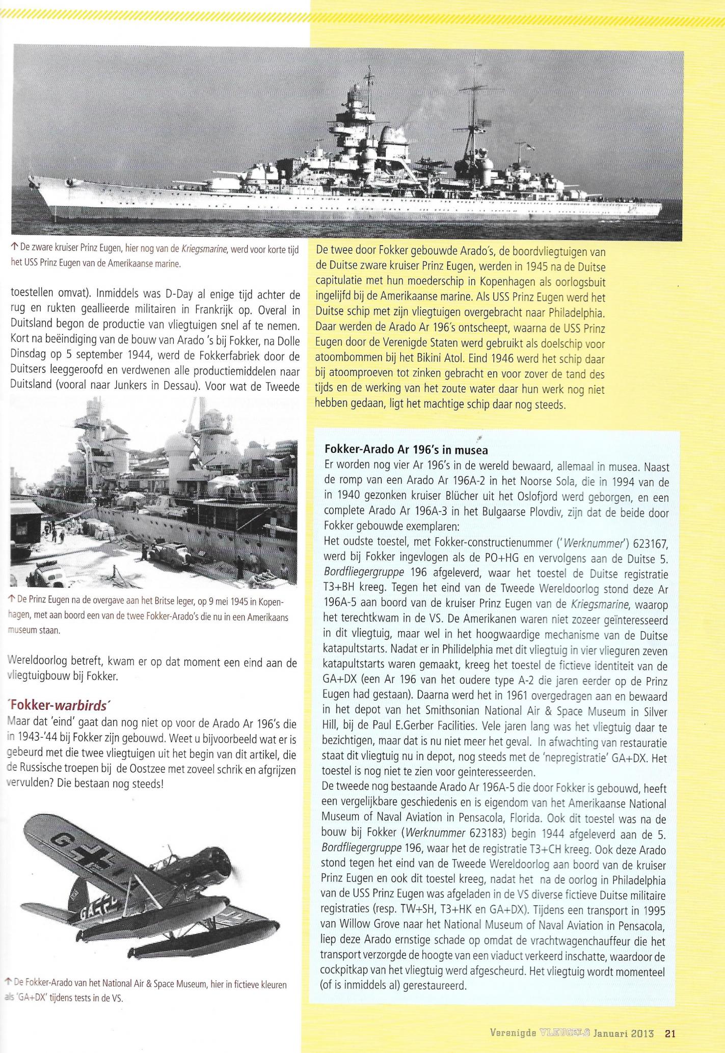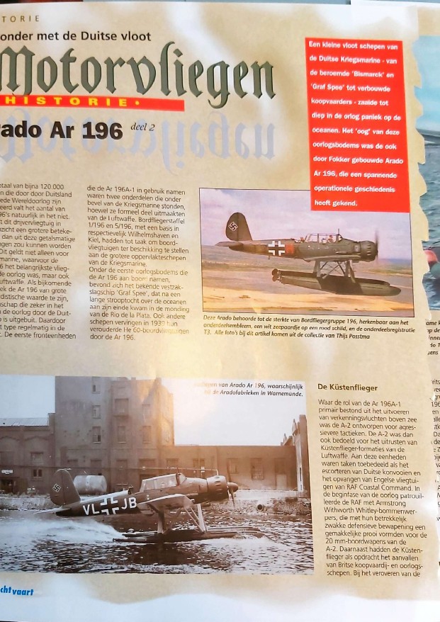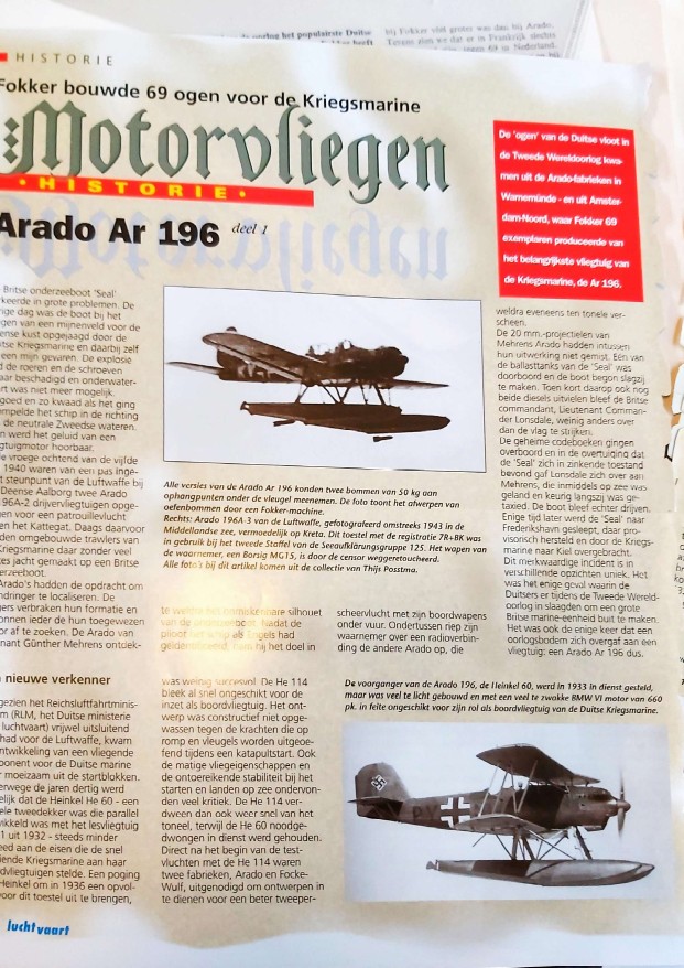 Ik ben op zoek naar twee tijdschriftnummers met een specifiek tweedelig artikel over de door Fokker gebouwde Arado Ar 196.