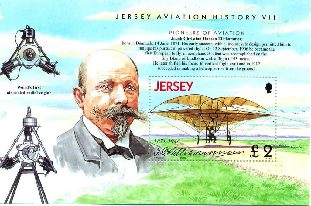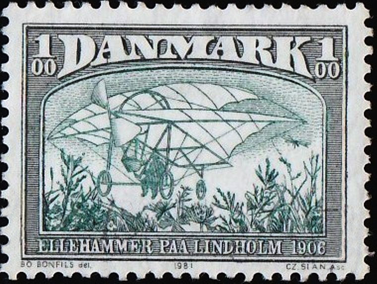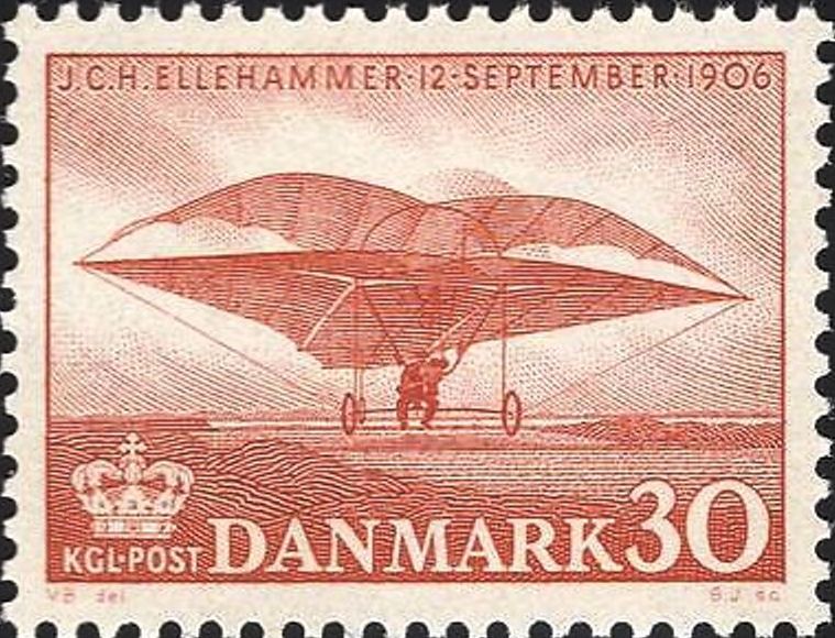 De trots van Denemarken op luchtvaartgebied was en is Jacob Ellehammer, een luchtvaart pionier uit het begin van de vorige eeuw. Hij zou de eerste vlucht in Europa hebben uitgevoerd, maar daar verschillen de meningen over. Op 12 september 1906 vloog hij een afstand van 42 meter op een hoogte van ongeveer een halve meter. Deze vlucht werd echter niet officieel erkend, omdat zij werd uitgevoerd op een cirkelvormige startbaan met een paal in het midden. Het vliegtuigje, 2 enorme vliegers boven elkaar, was met een draad met die staak verbonden. Het had geen echte roeren. Het vliegstoeltje was met scharnieren vastgemaakt aan vast vlak aan de achterkant van de vleugel zodat de slinger beweging van de bestuurder nog wat verticale verandering te weeg kon brengen. Het vliegtuigje was dus nog steeds aan de aarde gekoppeld en de centrifugale kracht hielp het ook in de lucht te blijven. Men kon dus niet van een vrije vlucht spreken.