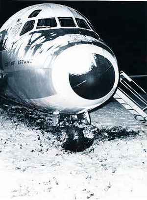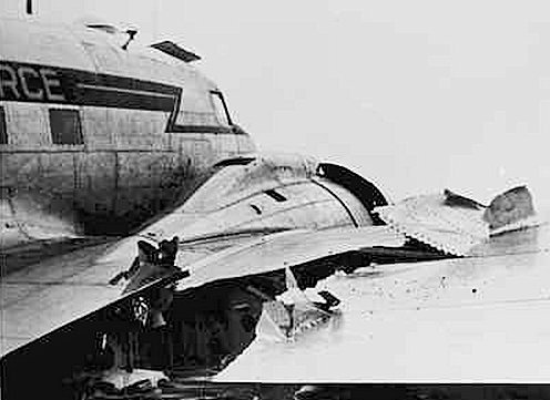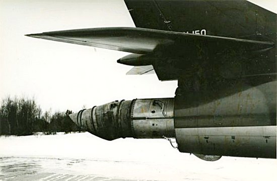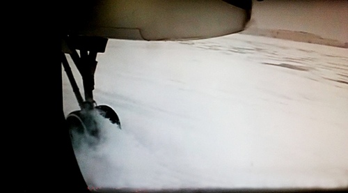 Aan de kin van de 201, in de sneeuw, hing een ding.