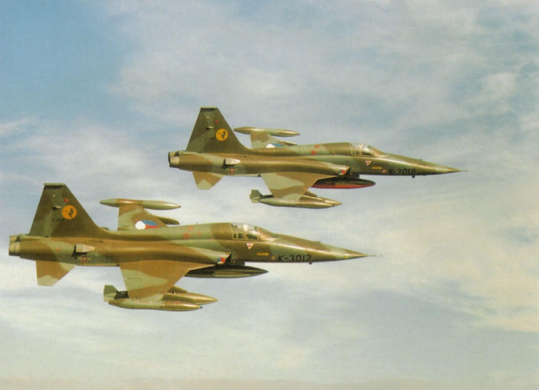 2x Northrop NF-5A "K-3012" en "K-3018" met op de staart een badge van 316 Squadron.