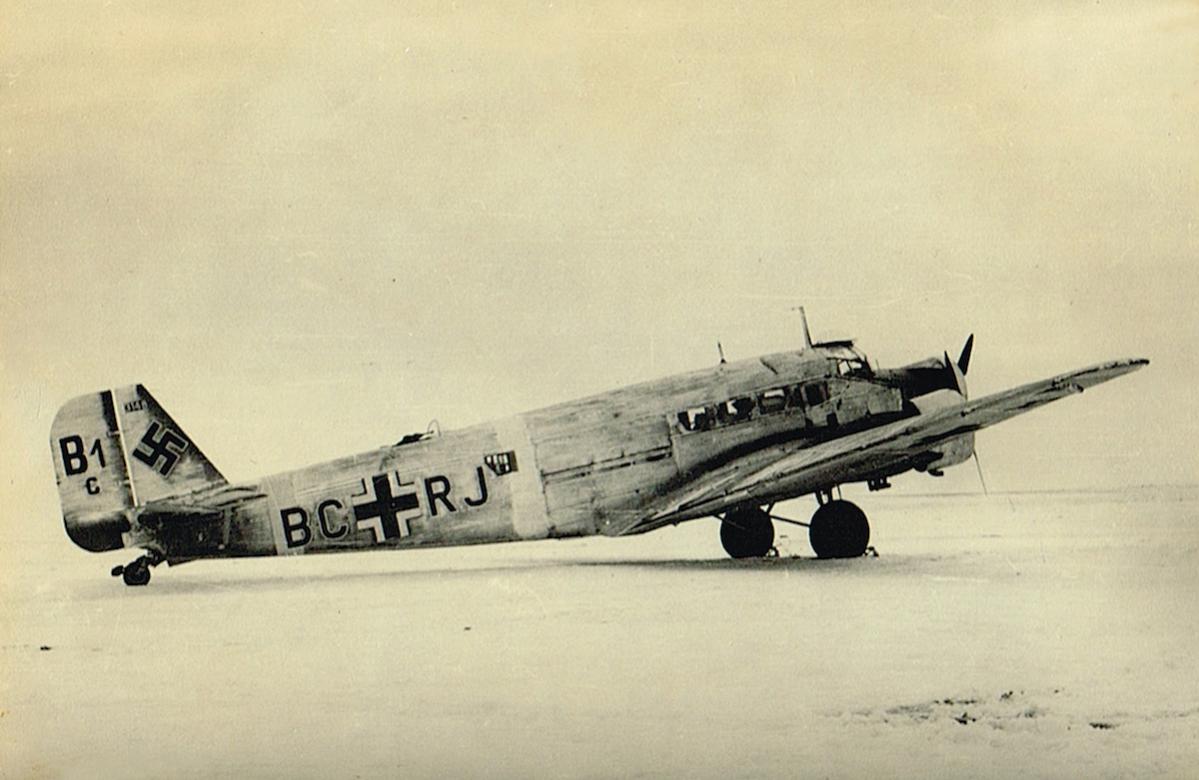 BC+RJ (B1C op staart). Junkers Ju-52/3m (gebouwd door ATG). WNr. 3148 (?), ik denk een ander nummer op de staart te zien. 1./K.Gr.z.b.V. 500.