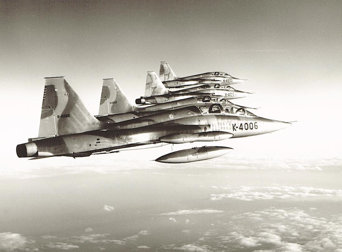 Foto 194, lijkt het er nu op dat het voorste toestel een droptank afwerpt?
