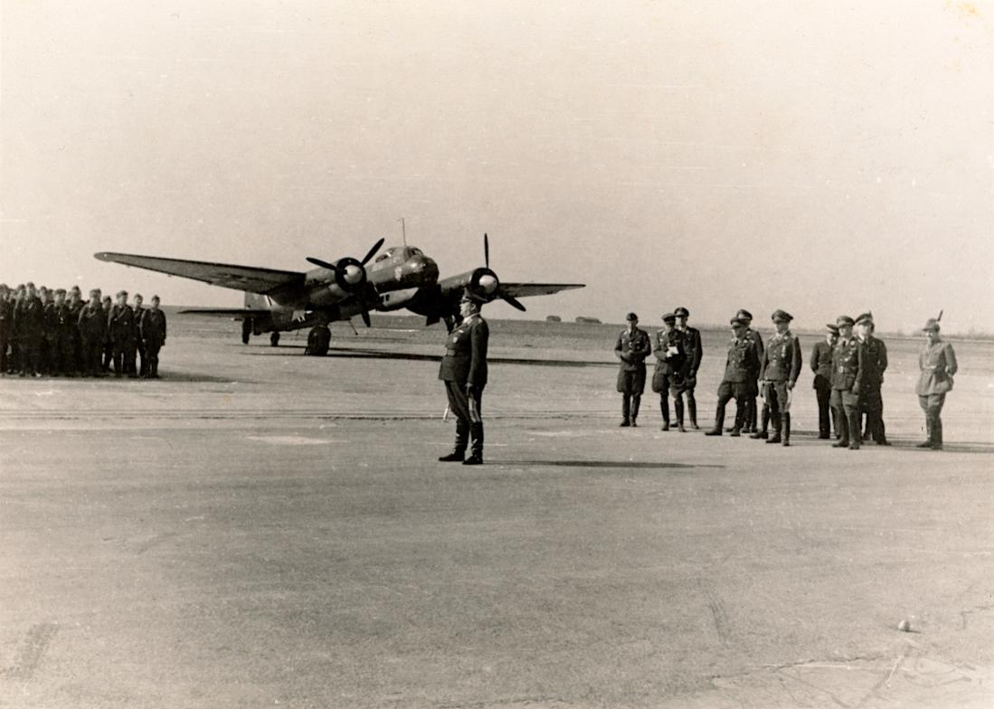 Ju-88 en Generalfeldmarschall Hugo Sperrle die de manschappen toespreekt.