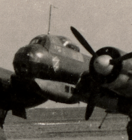 Aanvulling: deze foto is voor mij toch een raadsel. Ik vraag me af of in het verleden deze foto 641 gespiegeld is afgedrukt. Waarom? Het embleem op het toestel lijkt op die van Stab/KG 3 'Blitz' (1941-1944) maar die is precies andersom. Ik heb daarom de uitsnede maar eens gespiegeld, zie hieronder, en nu komt hij exact overeen met de afbeeldingen in boeken over de Luftwaffe emblemen. Een embleem zoals op foto 641 te zien is, zie uitsnede hierboven, ben ik nog niet tegengekomen. Of heeft men voor de twee zijden dezelfde mal gebruikt waardoor dit ontstaat? Weet iemand meer?