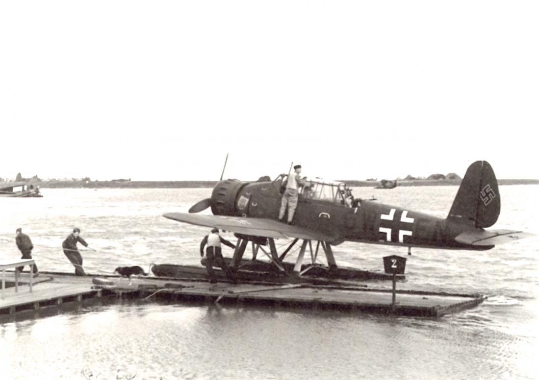 Op de achtergrond is overigens een vliegboot (lijkt een Do 18) te zien.