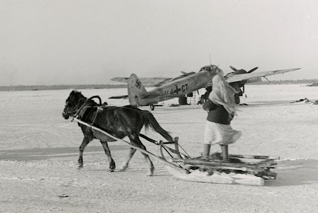 V4+CT. Junkers Ju 88A-4 van KG 1 "Hindenburg" op het Ladogameer (in het noordwesten van Rusland, ongeveer 40 km ten oosten van Sint-Petersburg), winter 1942.