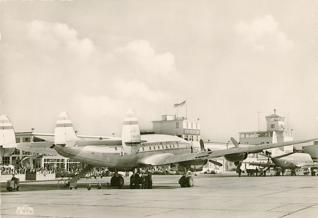 PH-LDK 'Amsterdam' (eerder PH-TDK) Lockheed Constellation L-749 op de luchthaven van Duesseldorf.