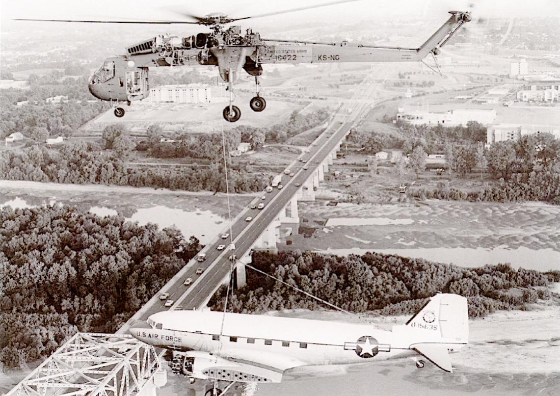 Sikorsky CH-54 Tarhe geeft C-47 een lift.