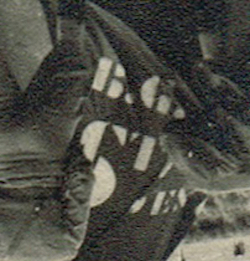 Hier een geroteerde uitsnede van het dekzeil uit foto 48. Van de tekst lijkt mij weinig te maken.