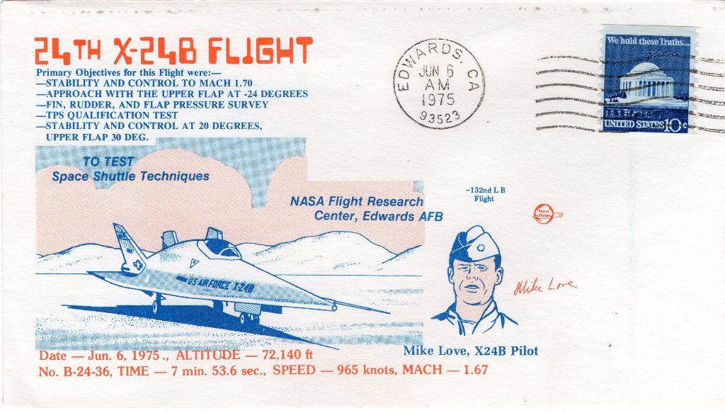 Hier twee andere covers in mijn bezit, over 2 vluchten van Mike Love die 12 keer met de X-24B vloog:
