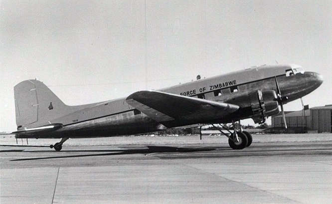Zimbabwe van 1982 tot 1994. Een gouden valk (?) op een C-47 en een Cessna 337
