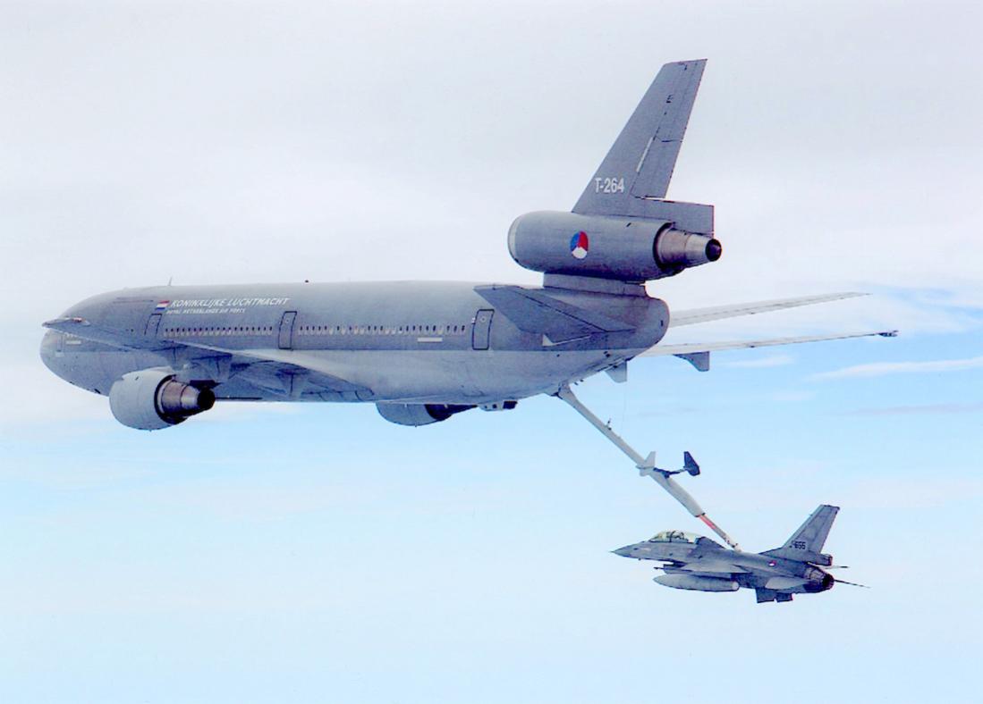 Het toestel rechts moest voor zijn positie wel naar links kijken, hij was de leider voor die formatie.