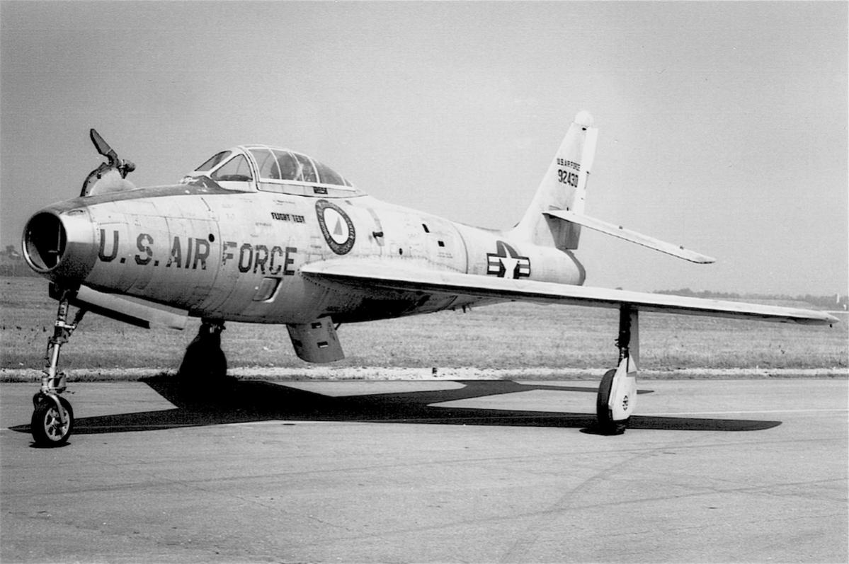 Republic YRF-84F prototype (korte tijd YF-96A genaamd) (49-2430) tijdelijk GRF-84F genaamd voor het project FICON.