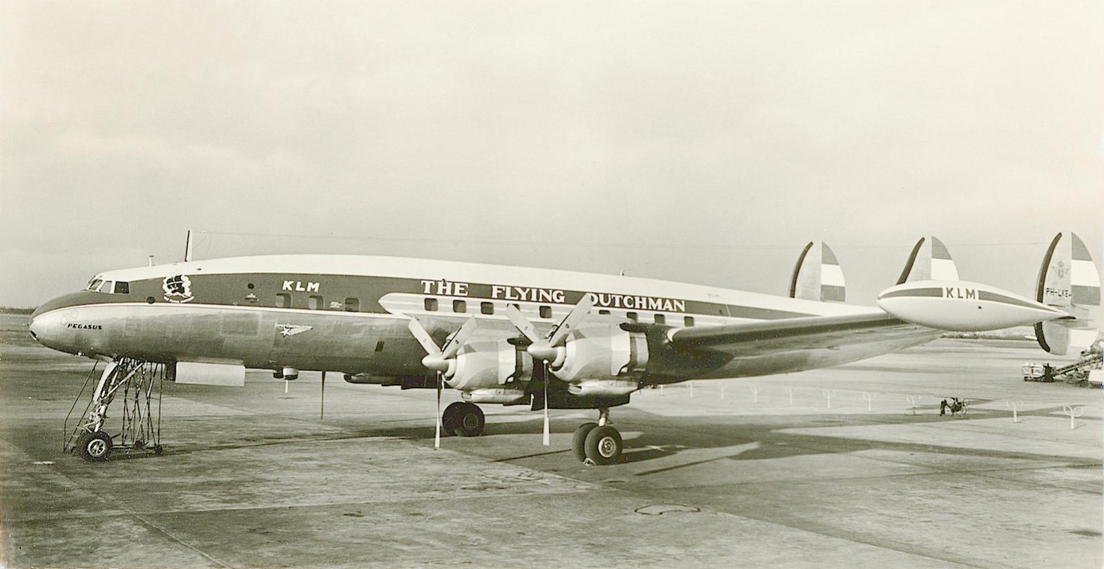 PH-LKE 'Pegasus'. Lockheed L-1049 Super Constellation. Bij deze kaart heeft de vorige eigenaar zowel aan de boven- als onderzijde een stukje afgeknipt (punaisesporen verwijderd?). Toch blijft dit voor mij een prentbriefkaart.