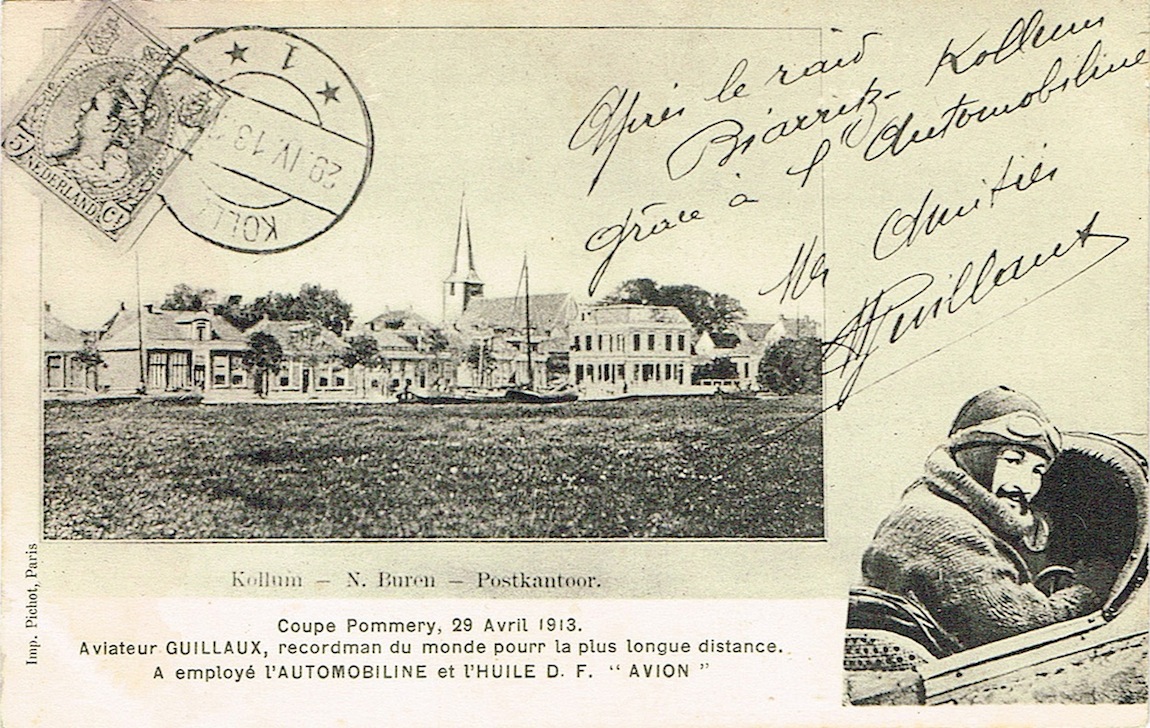 Ik heb een originele door Guillaux verzonden kaart uit Kollum, eveneens afgestempeld op 29 april 1913, waarop ook op de voorzijde een postzegel was geplakt (evenals op de gebruikelijke adreszijde).