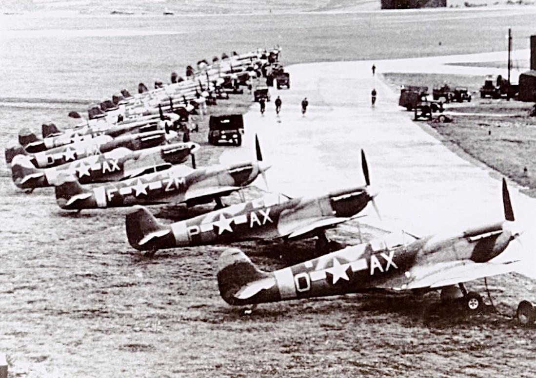 Ik heb altijd gedacht dat de Ami's slechts een paar recon Spitfires hadden maar deze foto logenstraft dat, ik tel er hier al 21.