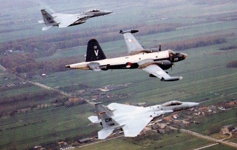 Onze bekende Mitchell (hier nog als N320SQ) en de demo F-16 van dat moment, de J-055, op Leeuwarden in 2008: