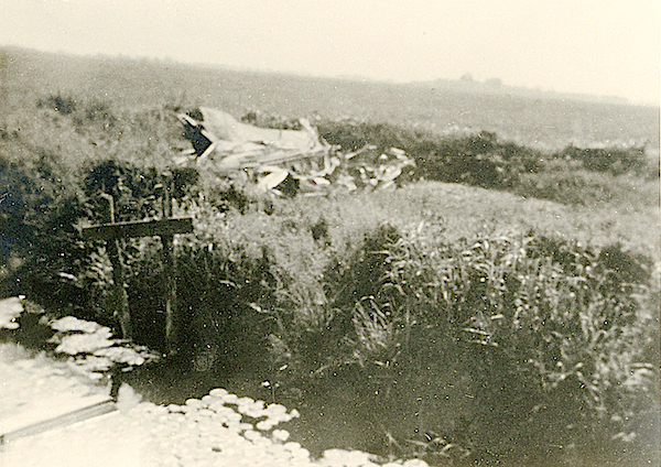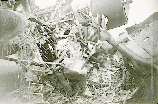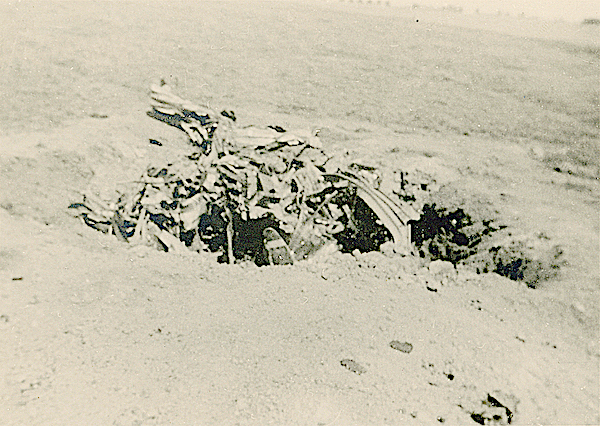 Foto 97. Tekst bij de foto: Op de linkse foto de romp. Rechtse foto de vleugels, een weiland verder.