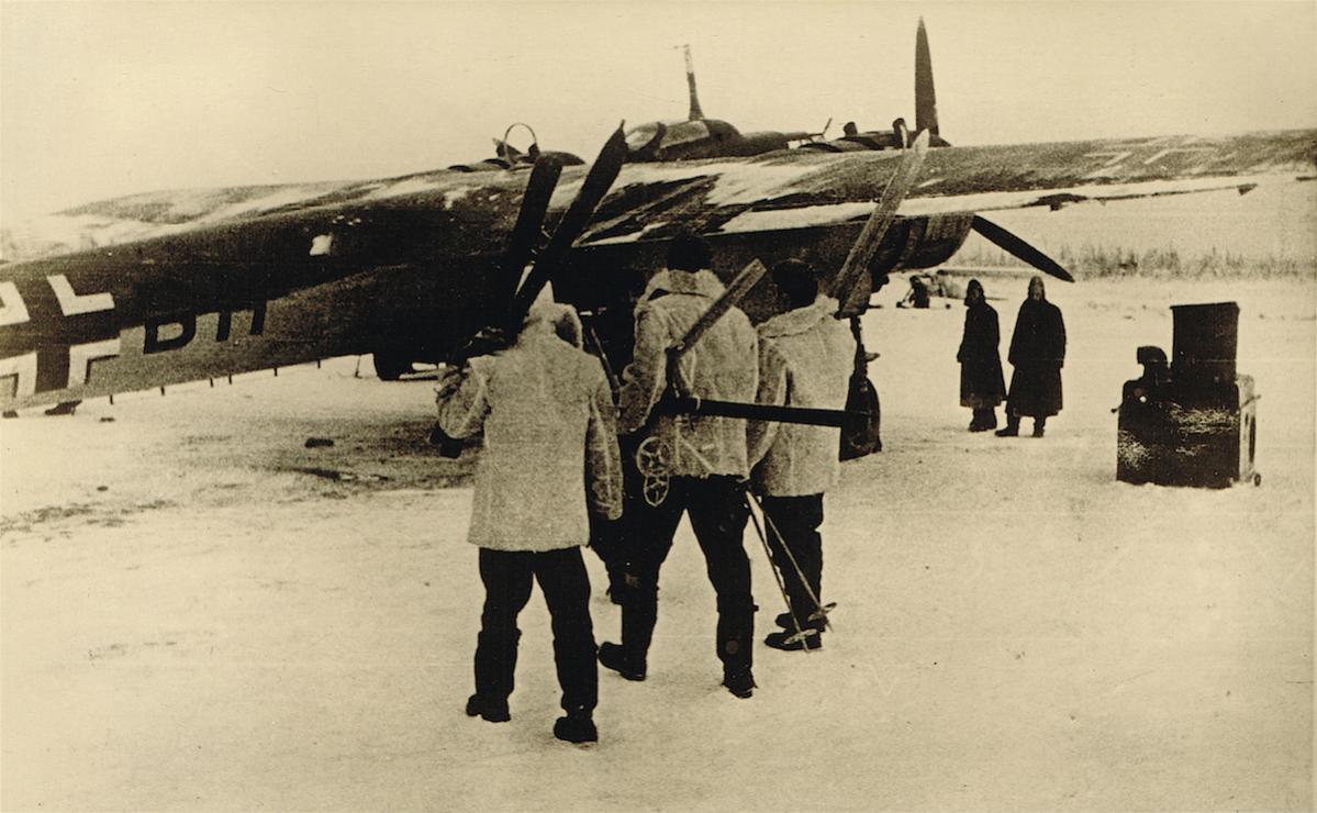 Dornier Do 17 en bemanning met skis.