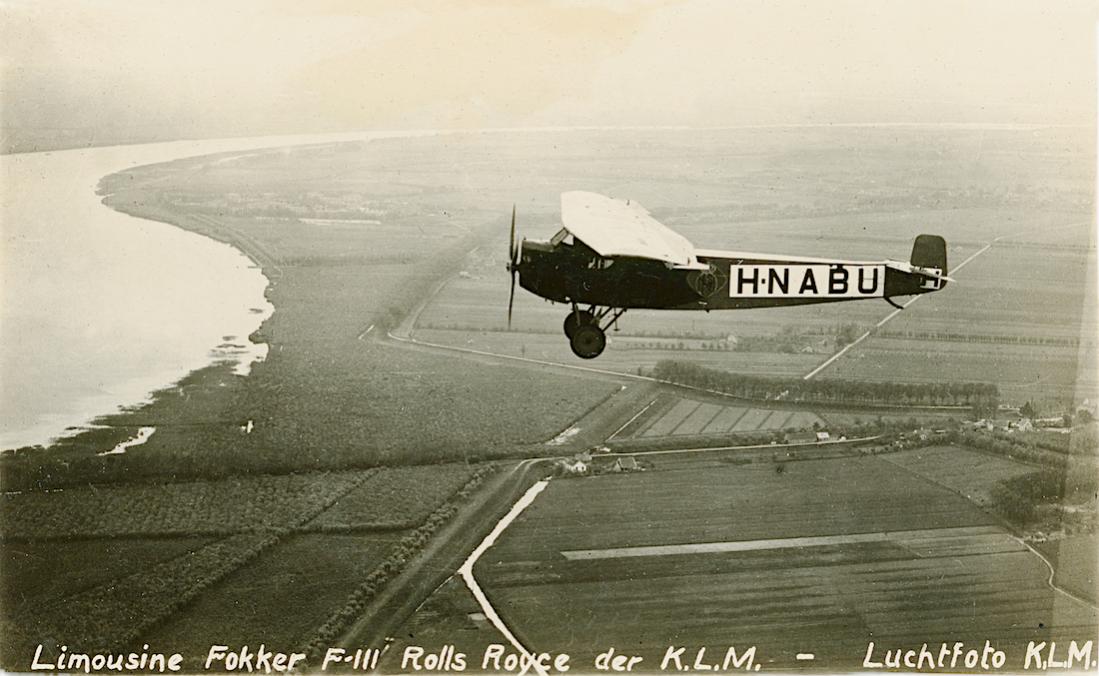 'H-NABU'. Fokker F.III. Van de zestien KLM F.III's waren de laatste twee als parasoldekker uitgerust, dit was er een van.