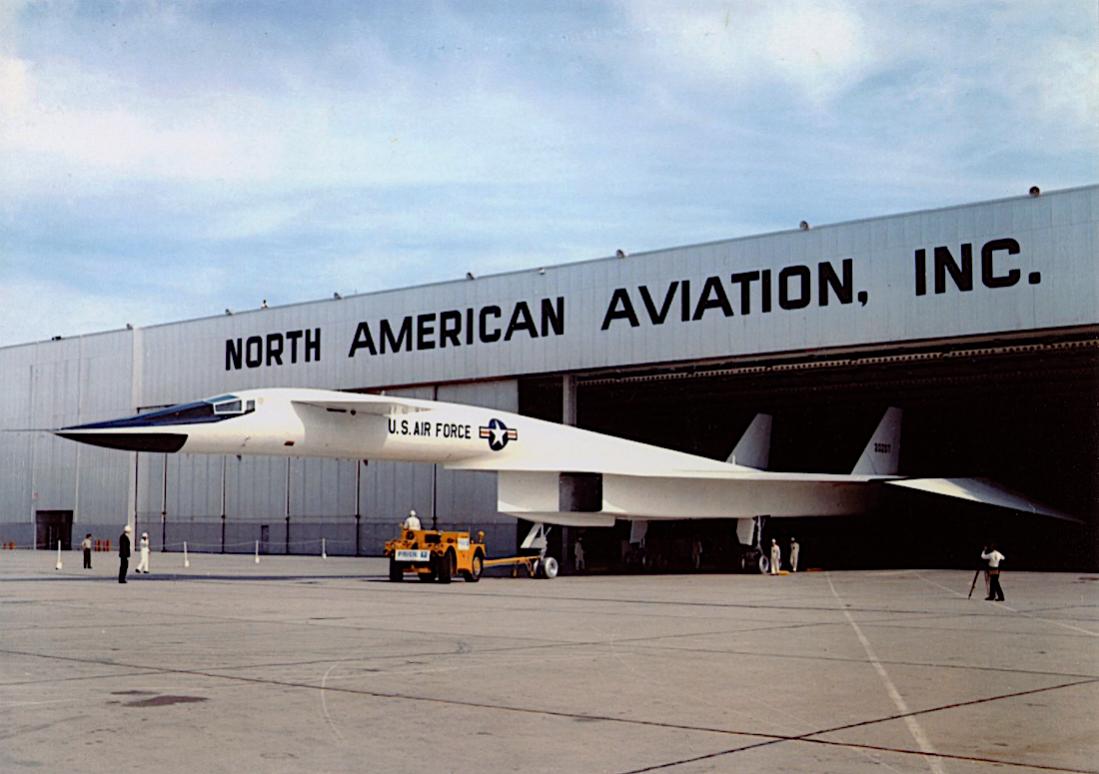 North American XB-70 Valkyrie wordt uit hangar getrokken.
