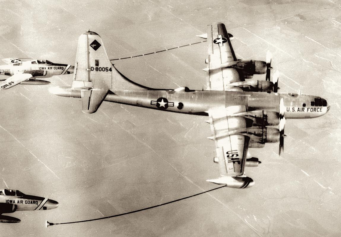 Boeing B-50J (0-80054) tankt 2 Republic RF-84F's van de Iowa Air National Guard.