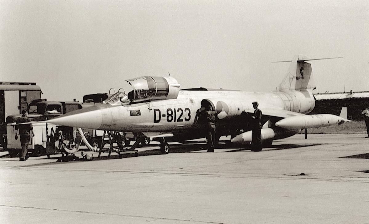 Foto 65, de Starfighter... Deze heeft een 306 Sqn-badge (de fotoverkenners) en dan kijk ik automatisch naar het Gatling-kanon. Deze heeft inderdaad een fairing over de opening, dus het kanon is verwijderd: ergo, dit is een RF-104G :)