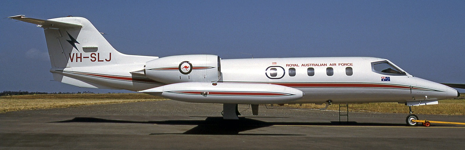 Gates Learjet 35, gebruikt voor het slepen van doelen in opdracht van het Australische ministerie van Defensie. Met roundel en civiele registratie
