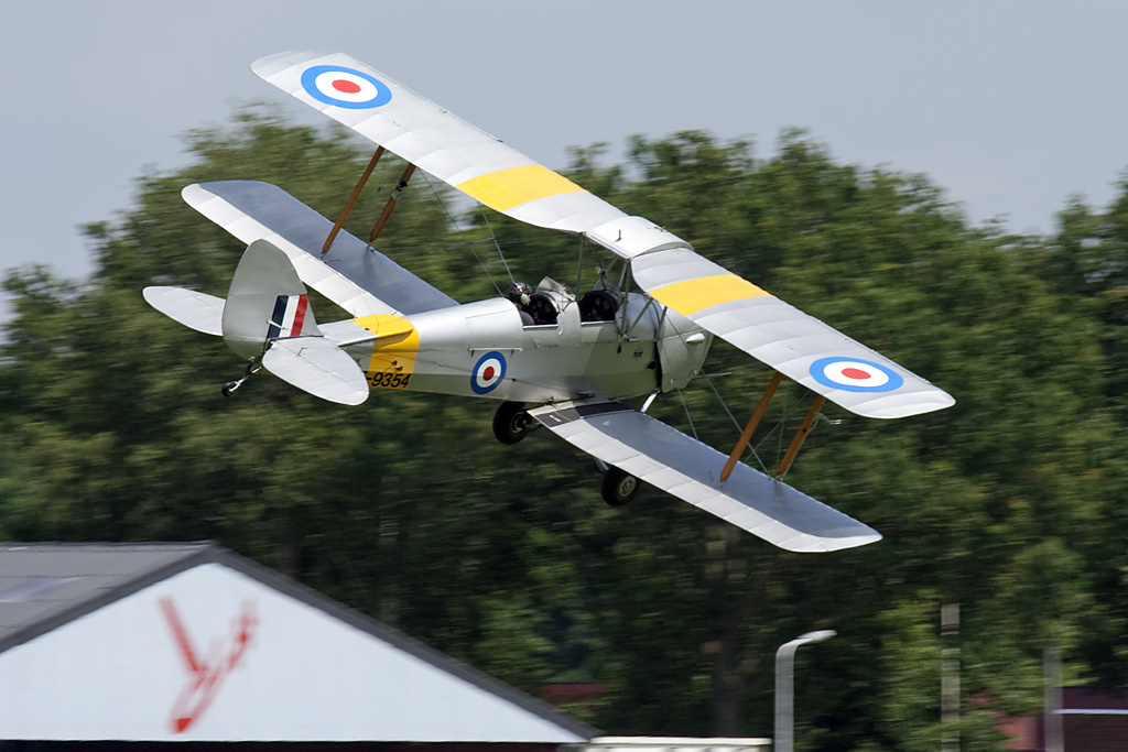 Deze keer maar eens wat dichter bij huis. De N935NL, een DH-82A Tiger Moth met RAF-serial T-9354, maakt een mooie low-pass op thuisbasis Hoogeveen. Het gebouw van de zweefvliegclub is ook herkenbaar: