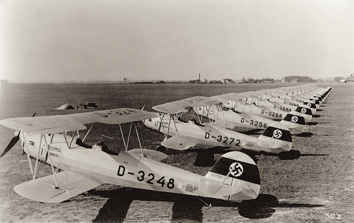 Heinkel He 72 Kadett. Deze foto is te plaatsen rond maart/april 1934 kijkend naar de registraties. Alle toestellen met zichtbare registraties zijn van het type He 72 C.