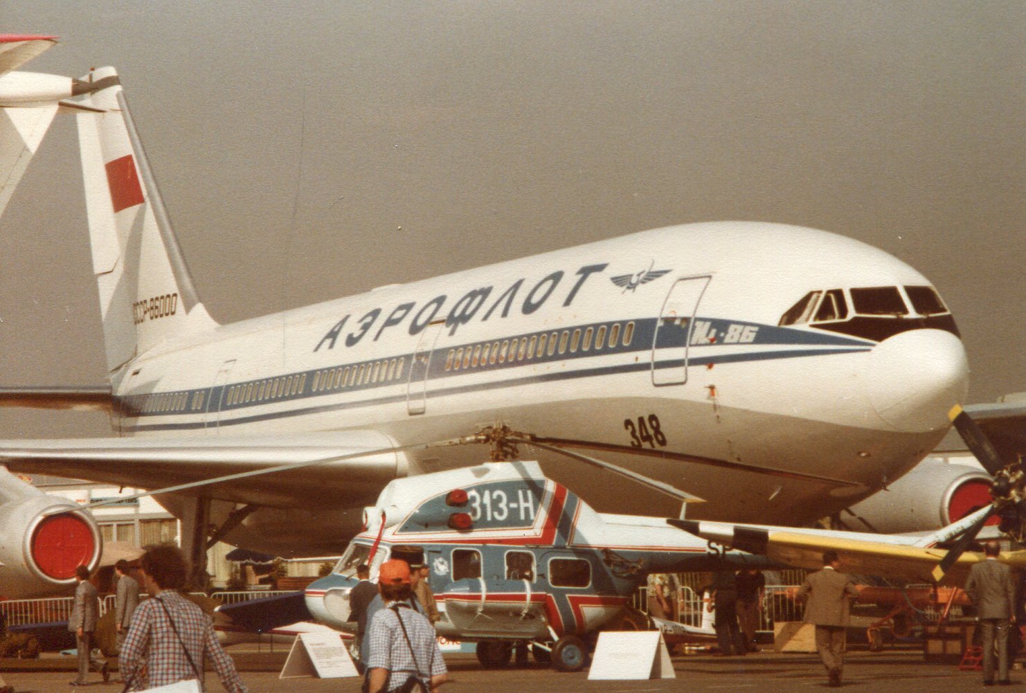 Je ziet, dat Iljushin goed naar Airbus heeft gekeken. Die liet de vloer achterin de cabine iets oplopen, zodat er een wat grotere breedte beschikbaar bleef. Net genoeg om een extra stoel erbij te plaatsen of een grotere pantry. De Il-86 past dezefde truc toe, zie maar naar de achterzijde van de cabinevloer.