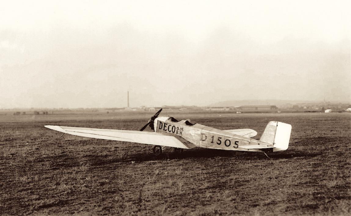 Het toestel heeft reclame voor de firma DECO GmbH op de romp.