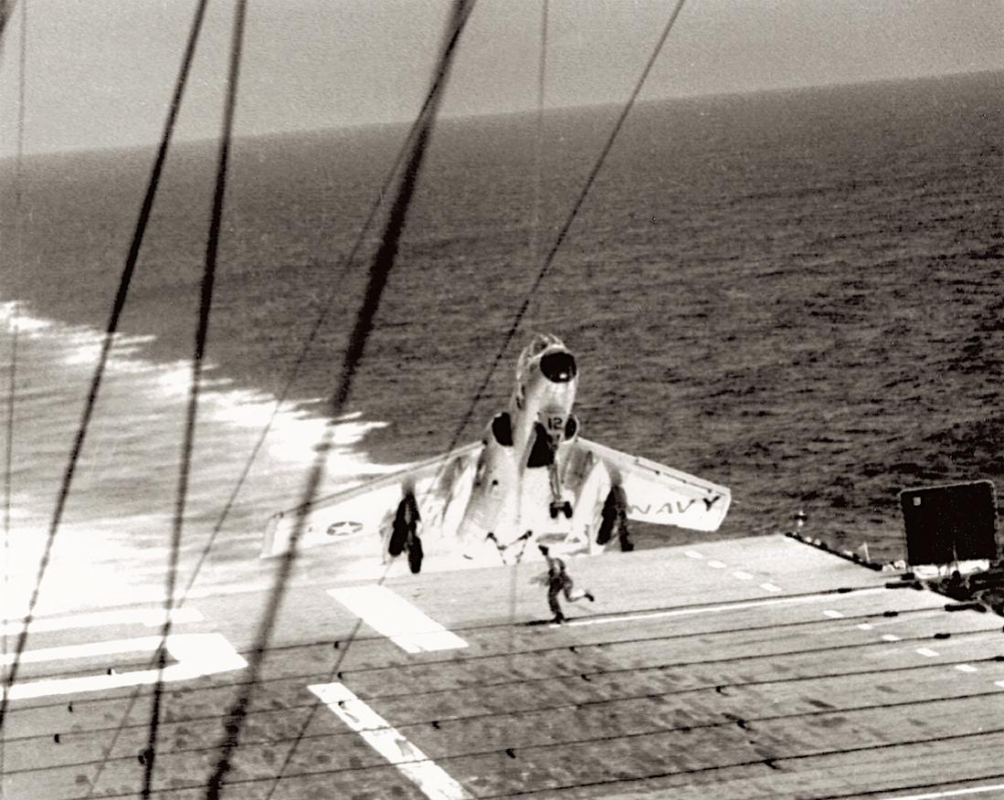 Het gaat om F7U-3 Cutlass met code D-412 (of 412-D) op CVA-19, de carrier USS Hancock op 14 juli 1955.