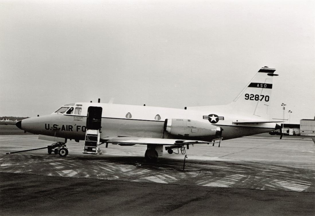 North American T-39A-1-NA Sabreliner. 59-2870 (MSN 265-3) converted to NT-39A (als afgebeeld) under Project Little Crow for use as ECM threat simulator. 4950th Test Wing, Aeronautical Systems Division (zie ASD op staart), Wright-Patterson, OH.