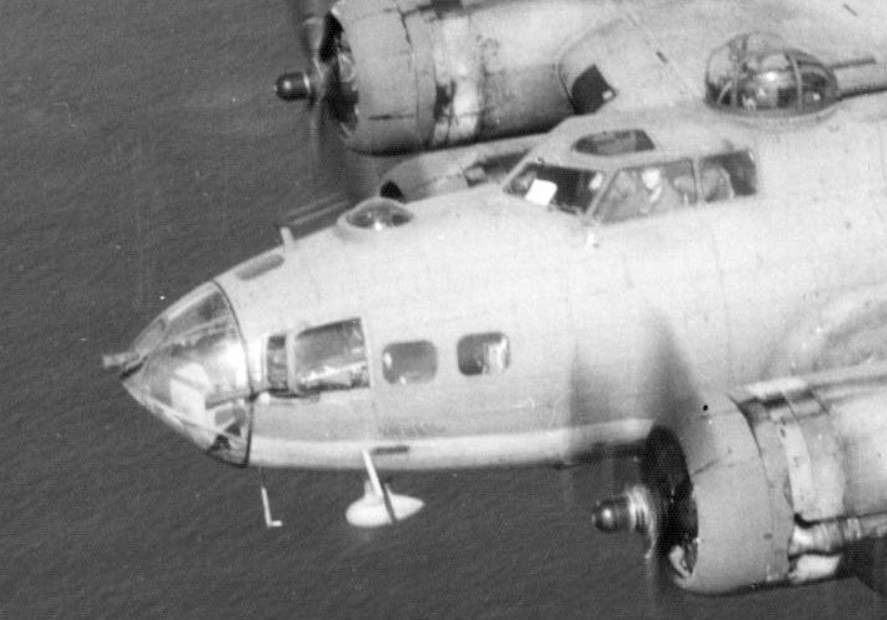 Ik denk een B-17G vanwege de gunports aan de zijkant van de neus. Als eerste woord op de neus lijkt er te staan: "With".