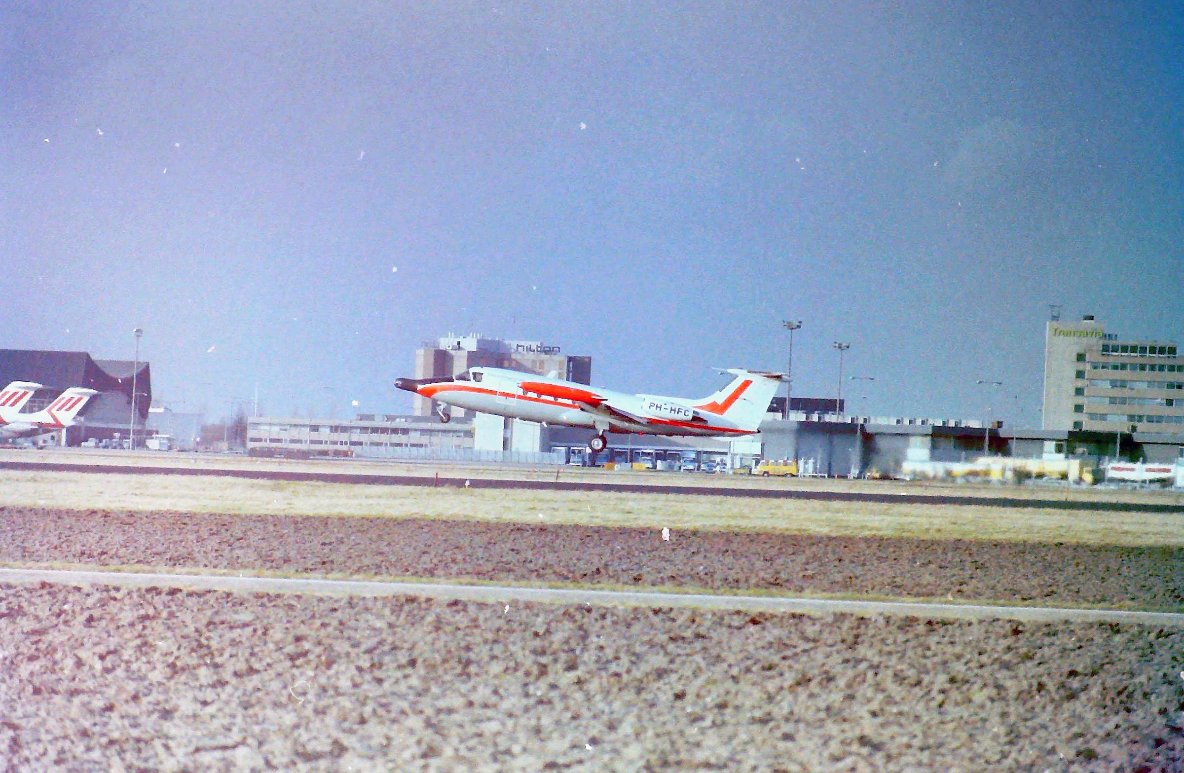 winter in de 80er jaren met een Hansajet bij Schiphol