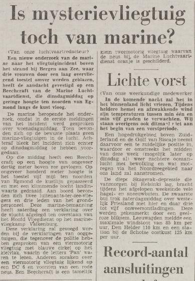 Door de Marineleiding werd er eerst hardnekkig ontkent dat er sprake zou zijn van een marine vliegtuig